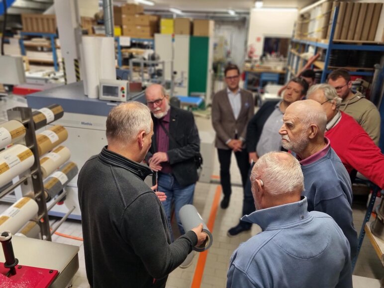Dr. Martin Zahel, Leiter des Geschäftsbereichs Fasern und Composite, gewährte den Teilnehmenden einen umfassenden einführenden Einblick in die Papiertechnik aus Sicht von Forschung und Industrie. Im Fokus standen dabei insbesondere aktuelle branchenspezifische Herausforderungen sowie die eingesetzten Werkstoffe und deren spezifische Oberflächen. Ein Rundgang durch die institutionellen Pilotanlagen durch Geschäftsbereichsleiter Steffen Schramm sowie ausgewählte Bereiche des Prüflabors mit Laborleiter Materialprüfung Martin Röllig schloss sich an. Dabei entwickelte sich ein intensiver fachlicher Austausch zu Gemeinsamkeiten und Unterschieden zwischen der Schweißtechnik und der Papiertechnik. Besonders deutlich wurden Parallelen bei artverwandten Füge- und Prüfverfahren, die aus DVS spezifischer Perspektive den „verwandten Verfahren“ zugeordnet werden konnten. Ein weiterführender Austausch sowie ein erneuter Besuch mit interessierten DVS-Mitgliedern sind vorgesehen, um die gewonnenen Eindrücke fachlich zu vertiefen.