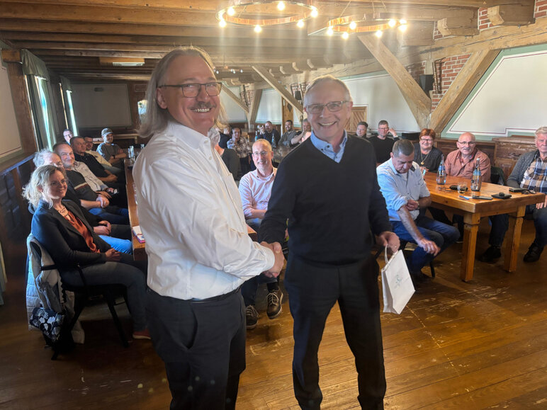 Im Anschluss fand im Festsaal des Gasthauses Hopfenschlingel die Mitgliederversammlung statt. Nach der Begrüßung durch Geschäftsführer Ludger Niekamp wurde die Tagesordnung bestätigt. Vorgestellt wurden geplante Fachvorträge sowie eine Exkursion, deren Ziel noch festgelegt wird. Wolfgang Mayer berichtete über die erfolgreiche Teilnahme an Jugend schweißt und über das kursstättenübergreifende Projekt „Gorilla schweißen“, das am 25. April stattfindet.