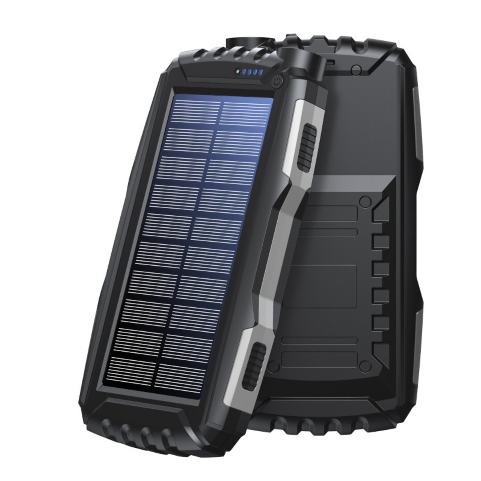- Laden mit USB oder über die eingebauten Solarzellen